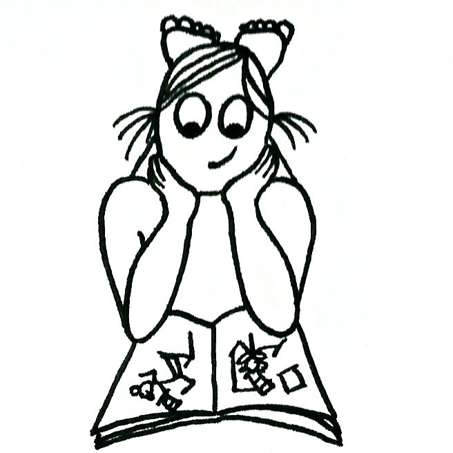 Cartoon of a little girl rapt in a book.To the casual observer, the two probably don’t seem to have much in common: one renegade Time Lord from Gallifrey who is in possession of a TARDIS and a sonic screwdriver, and one human being from Earth, armed with a typewriter, black ink and crayons. One science fiction character, and one creator of children’s fiction.