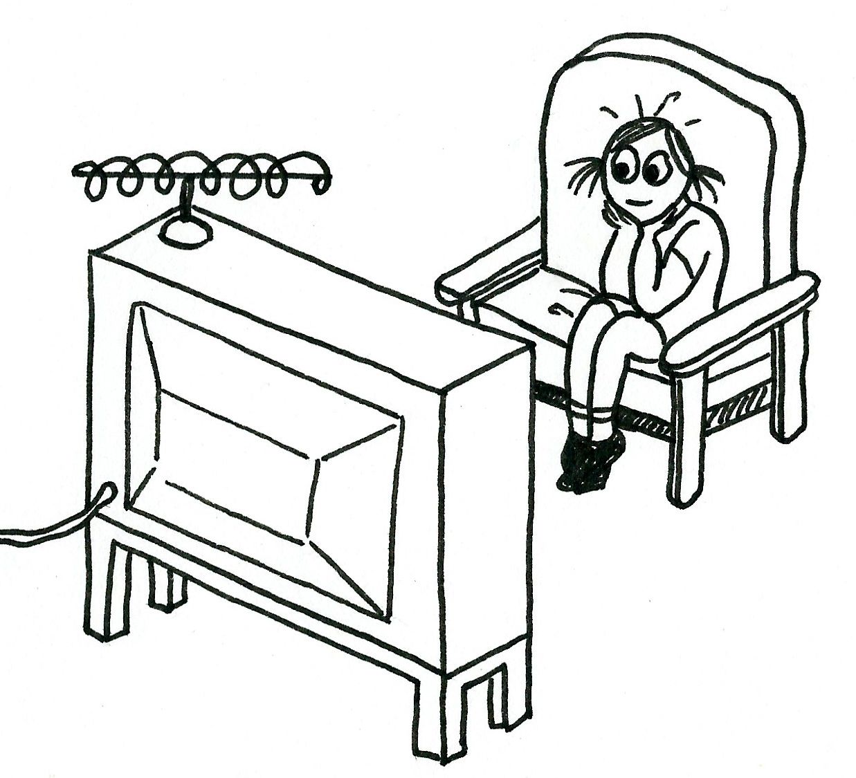 Cartoon of a little girl avidly watching television.But as a child, I didn’t think much about the similarities or distinctions between them. Both doctors simply held sway in my most important realm – the world of imagination and ideas.